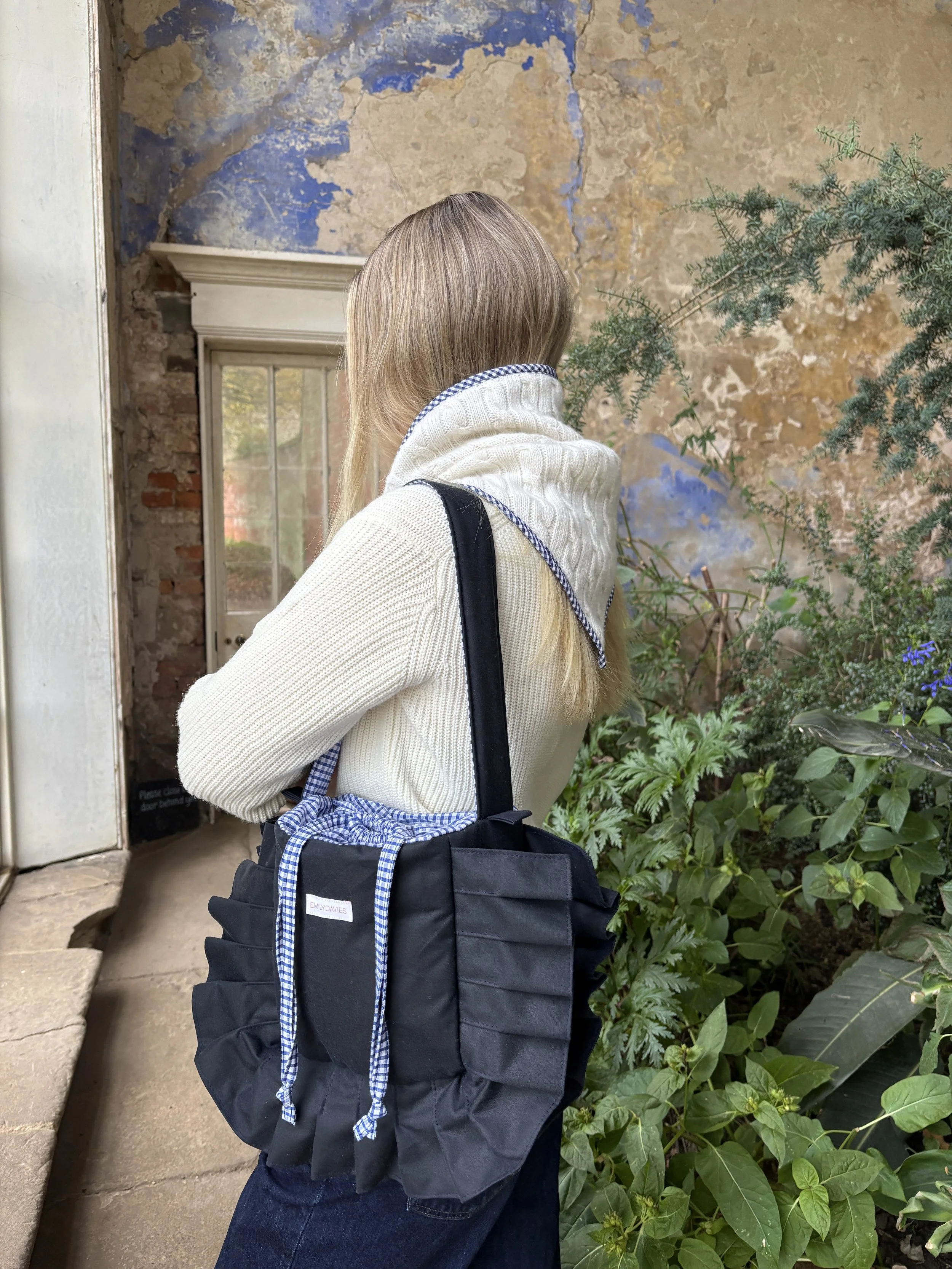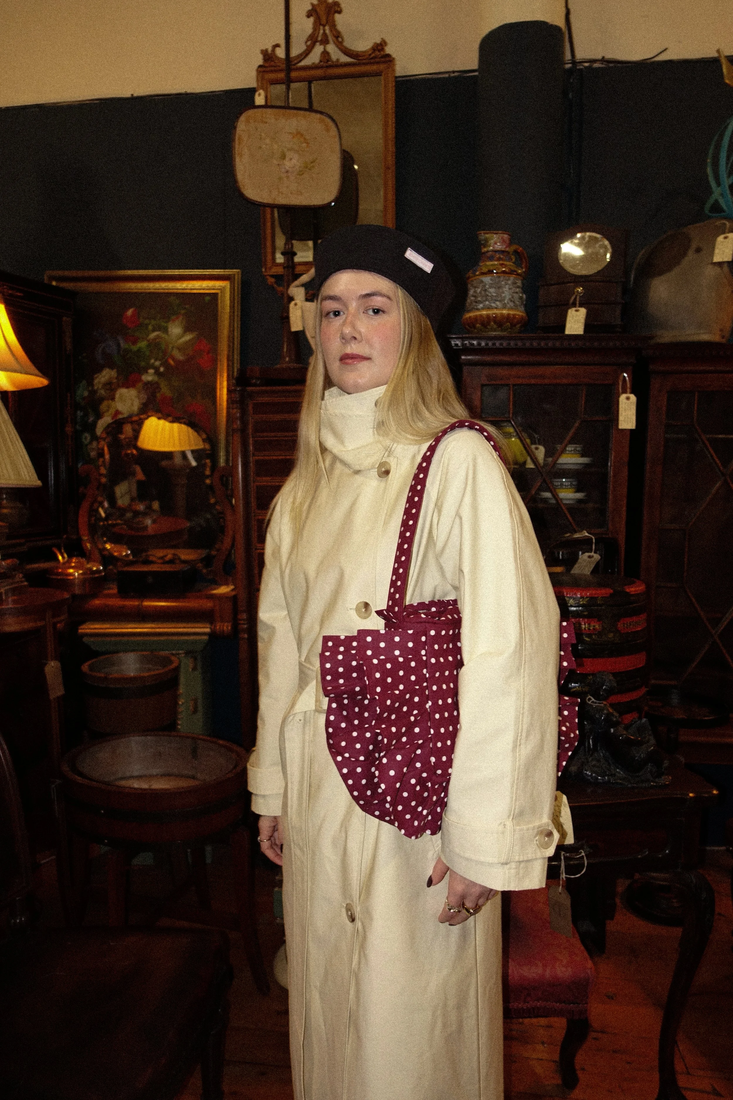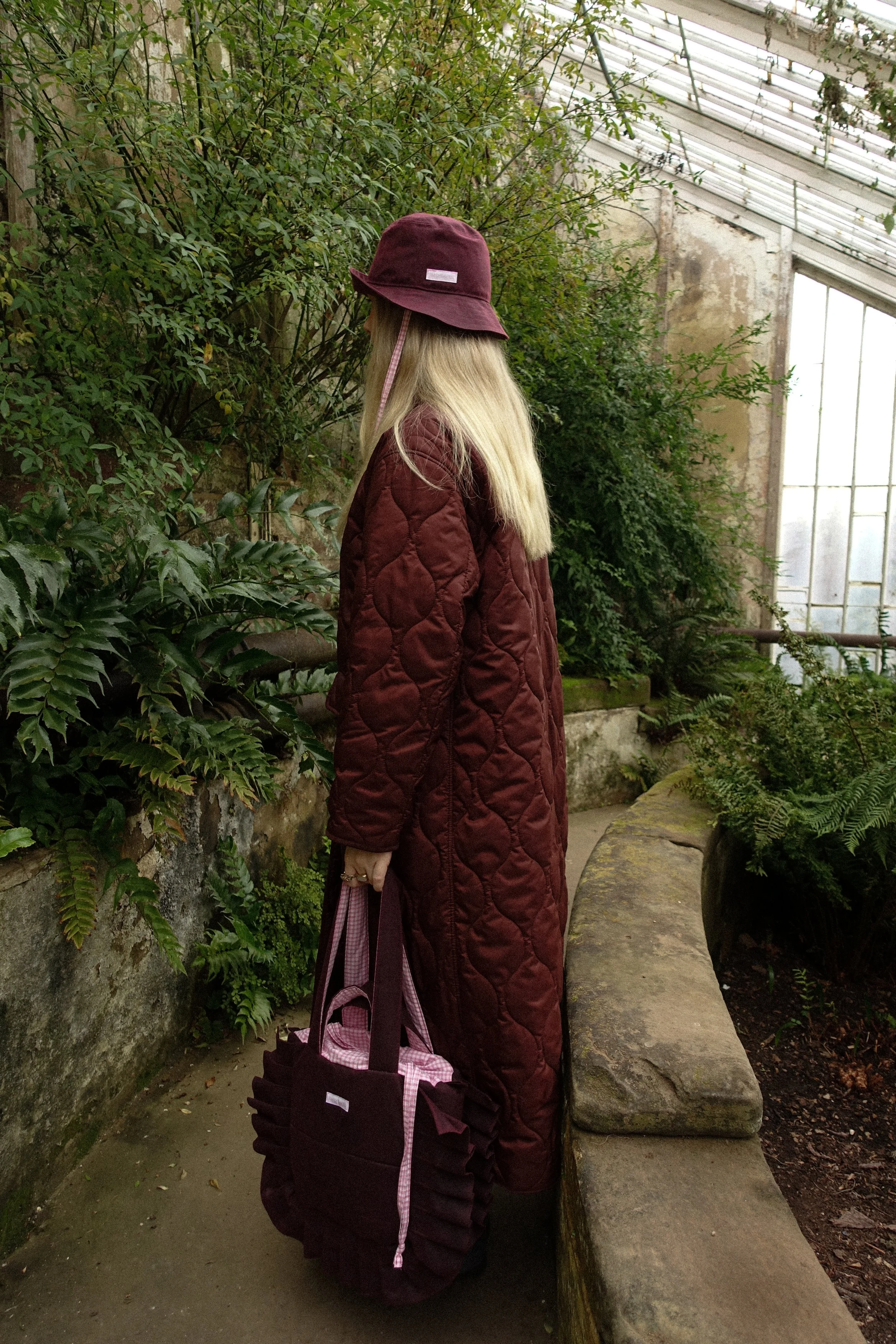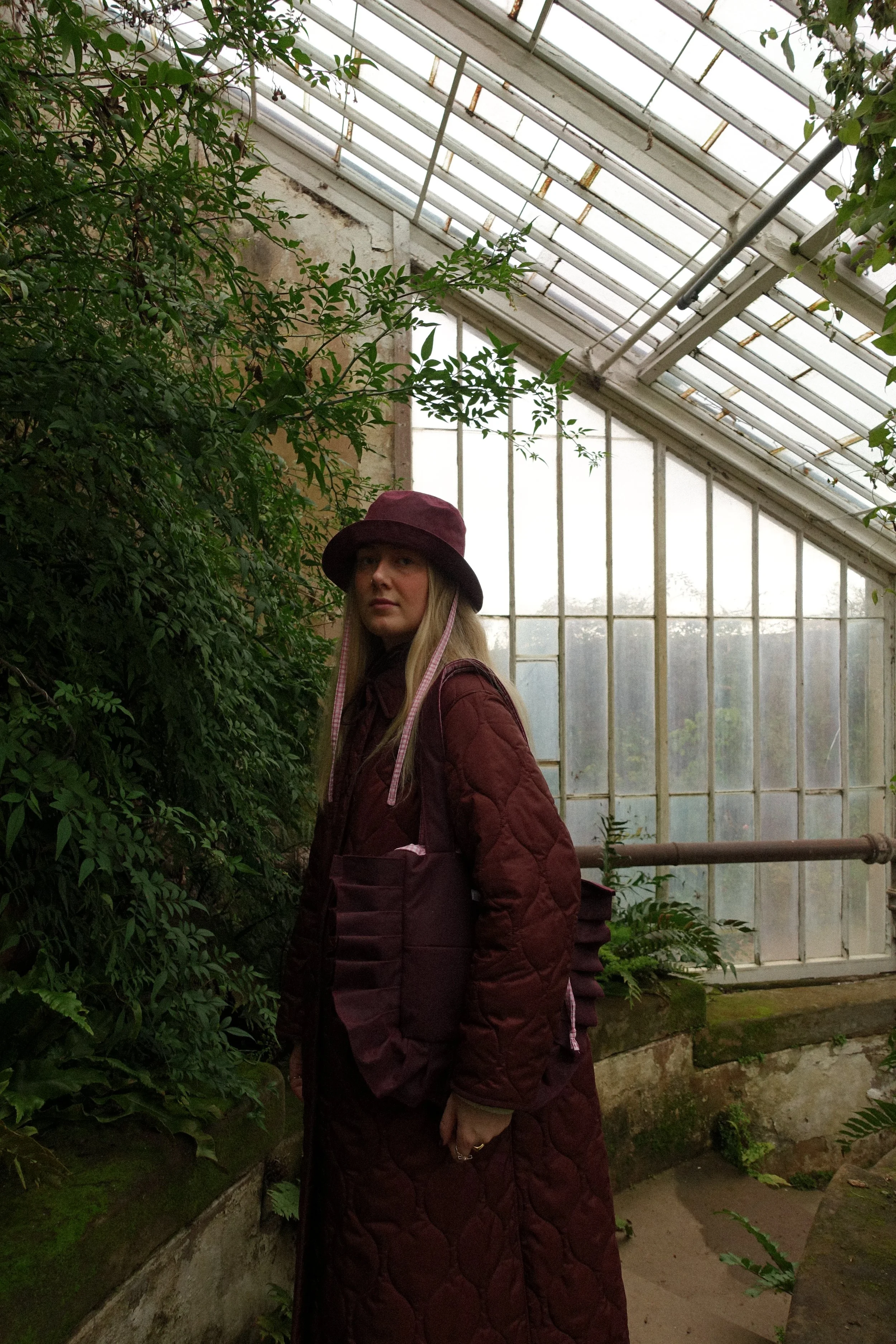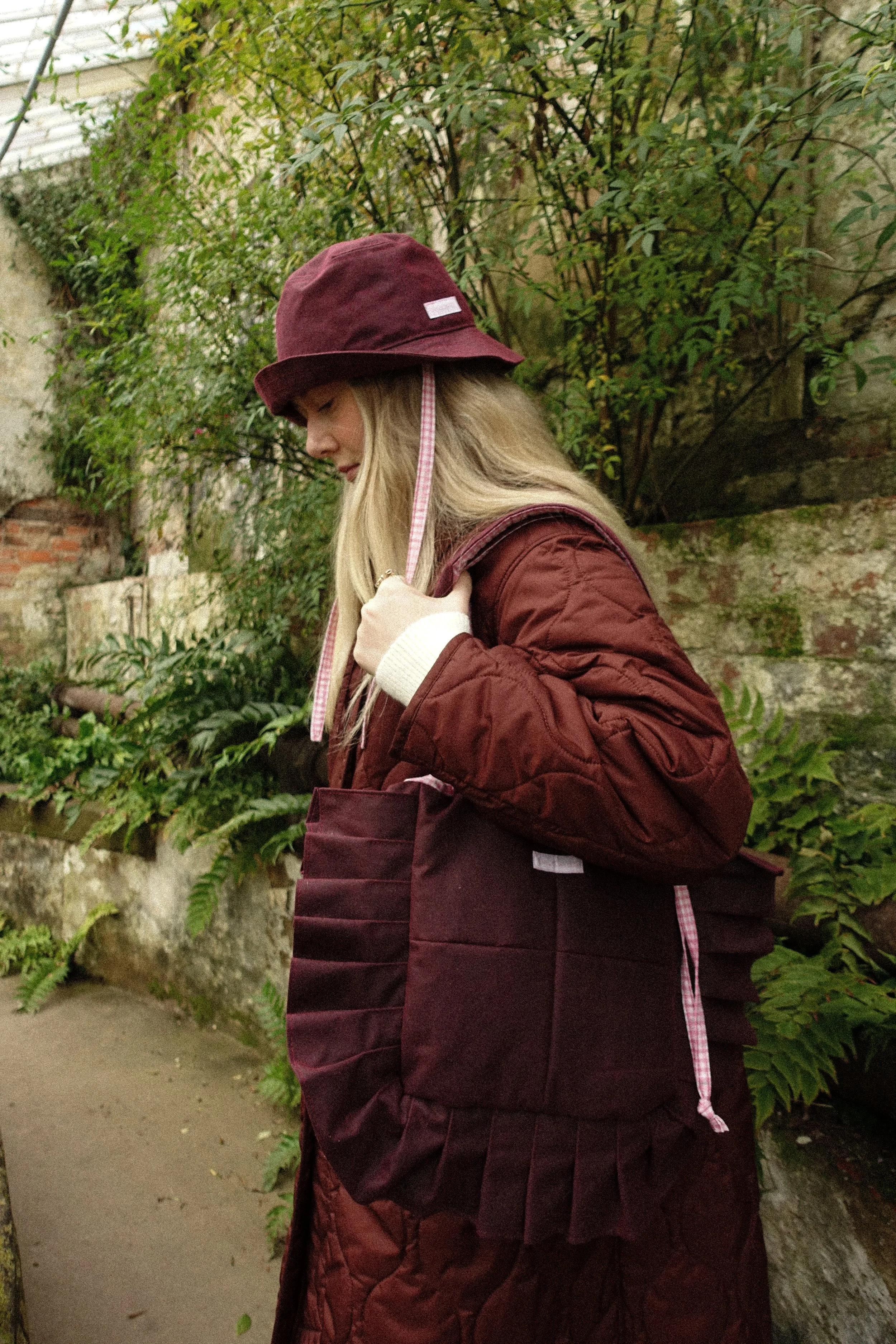 Alongside the classic silhouettes of the Puffy Bags, the ‘Out For a Walk’ Collection features new products, including Sailor Hats and scarves. So you can wear the full ‘Emily Davies’ aesthetic from head to toe. You’ll notice playful use of pattern, texture and colour throughout the pieces, as well as new fabrics, waxed cottons in particular, perfect for the British weather!